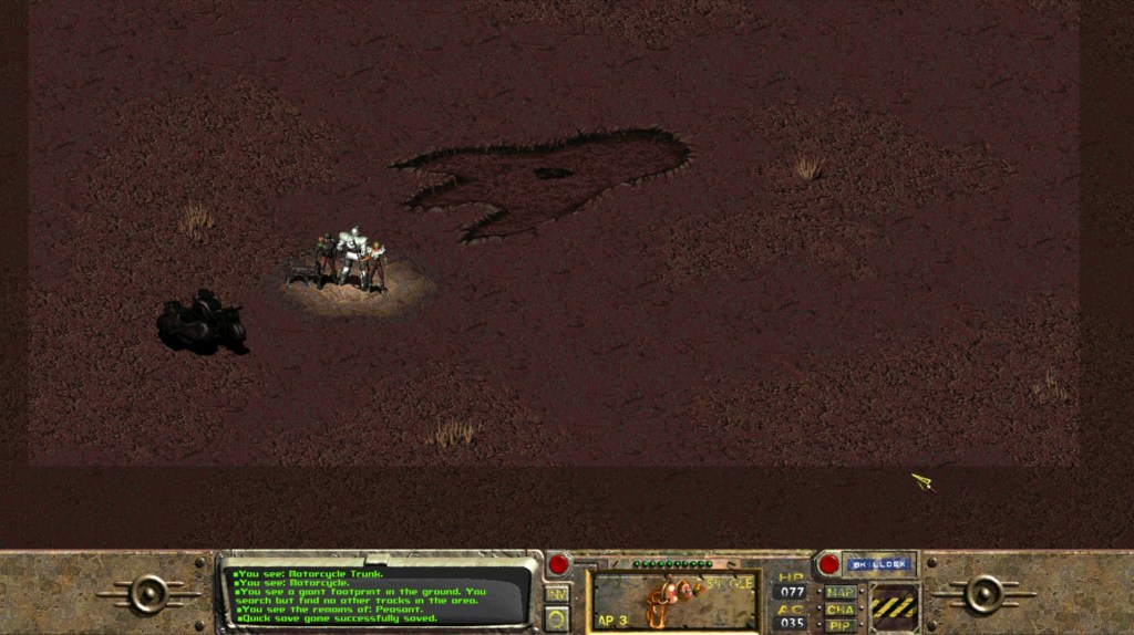 Give yourself 10 luck and you get all the crazy special encounters, like this kaiju footprint!